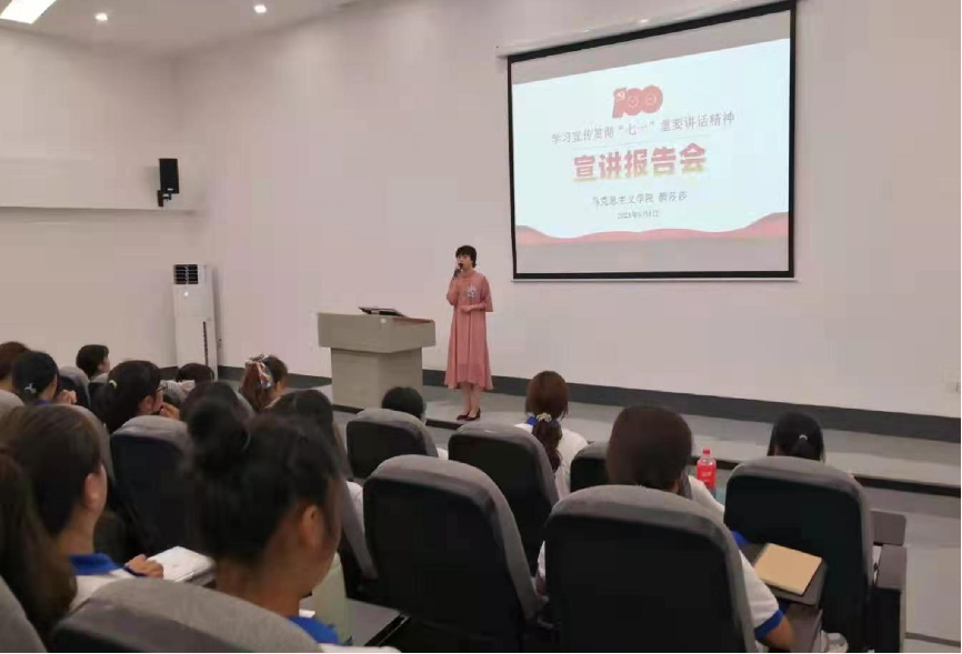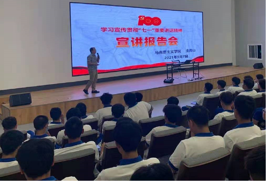 根据德阳市罗江区关于学习宣传贯彻习近平总书记“七一”重要讲话精神的安排部署,9月7日、8日晚,马克思主义学院德阳校区组织开展学习宣传贯彻“七一”重要讲话精神宣讲报告会。本次宣讲报告会面向德阳校区全体新生,由马克思主义学院教师组成宣讲团,分六场进行。