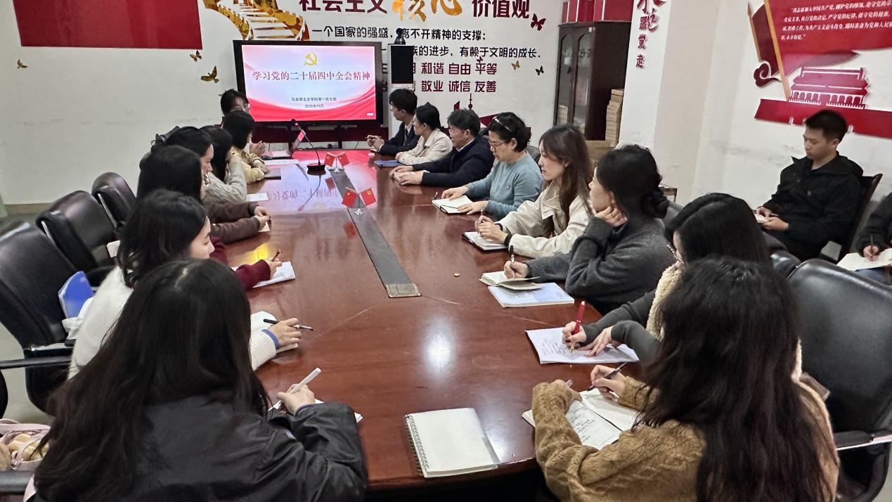支部书记邓海霞作总结。学习贯彻党的二十届四中全会精神是当前和今后一个时期全党全国的重大政治任务。作为高校思政课教师,首先自己要学深悟透,准确把握全会精神的核心要义,深入理解其中的新表述和新论断,把学习成果转化为推动教学科研和学院发展的实际成效。其次是加强集体备课,找准理论和现实的结合点,更有针对性地将全会精神融入思政课教学。最后是善于分析学生的认知特点,把精神理论宣传和学生实践体验结合起来,选择合适的方法融入思政课教学,帮助学生学习贯彻党的二十届四中全会精神。