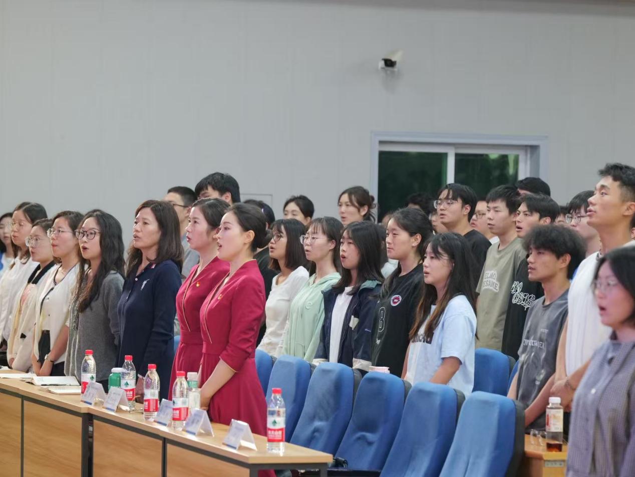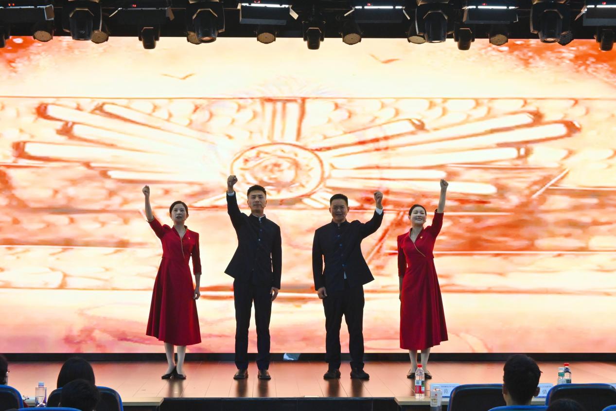 现场共唱红歌《歌唱祖国》。伴随着激昂的旋律,现场师生齐声歌唱,歌唱祖国壮丽山河,歌唱祖国繁荣昌盛,歌唱时代英雄辈出,歌唱人民砥砺奋斗,歌唱青年践行使命。“两弹一星”精神是激励当代青年的精神源泉。范恒希望同学们以先辈为榜样,将个人理想融入国家发展,在中国式现代化建设中勇挑重担。