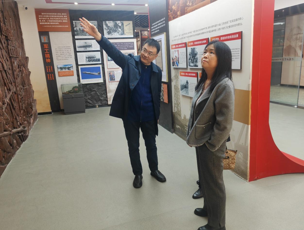 此次调研主要围绕校园红色文化阵地建设主题展开。成都工业职业技术学院马克思主义学院院长刘勇对西财天府马克思主义学院一行的到来表示欢迎。刘勇带领大家参观中国工业精神红色文化馆,并介绍了场馆设立的初衷和建设过程。他指出,作为具有工业特色的学校,如何引导学生在学习专业技能的同时增强历史使命感,是学院在育人过程中要回答的重要问题。基于此,学院以中国工业精神为主线,挖掘中国工业精神的红色内涵,打造“教学+科研+精神传承”为一体的红色阵地。